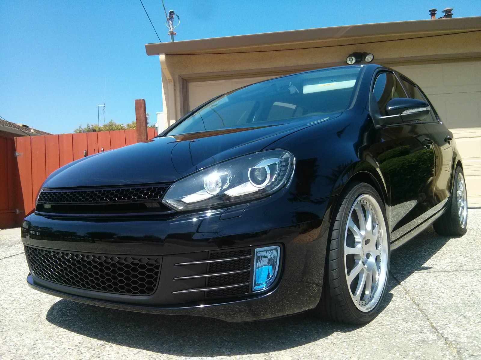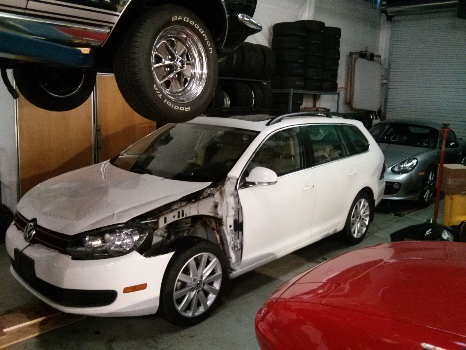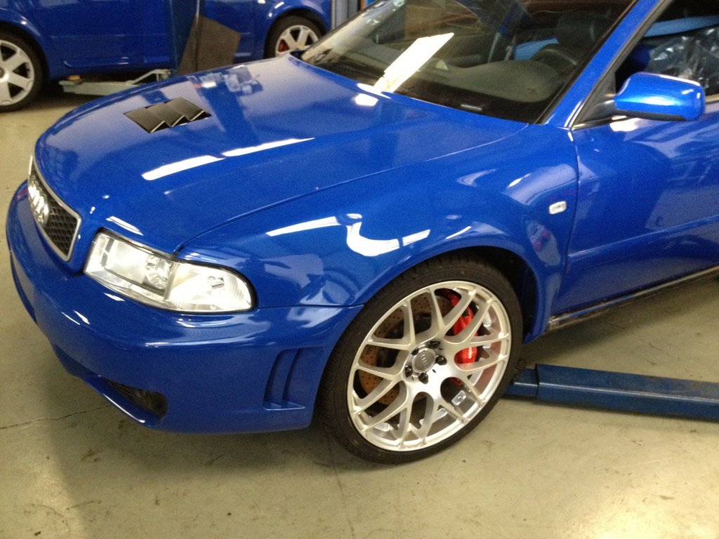 We have converted Audi’s to European spec (Nogaro Blue RS4 shown below). Take a look at the totaled Volkswagens we restored to better than pre accident condition with welded and shaved VW hoods on these MK6 white jetta, black Golf, black Jetta Sportwagen and a GTI front end conversion with Golf R Xenon AFS headlight retrofits for a cleaner appearance. We handed the wiring and programing so that these models could enjoy safer lighting (shown in gallery below).
