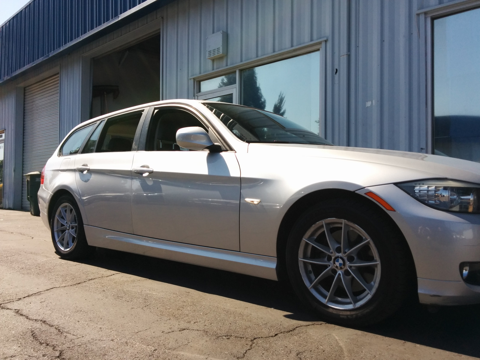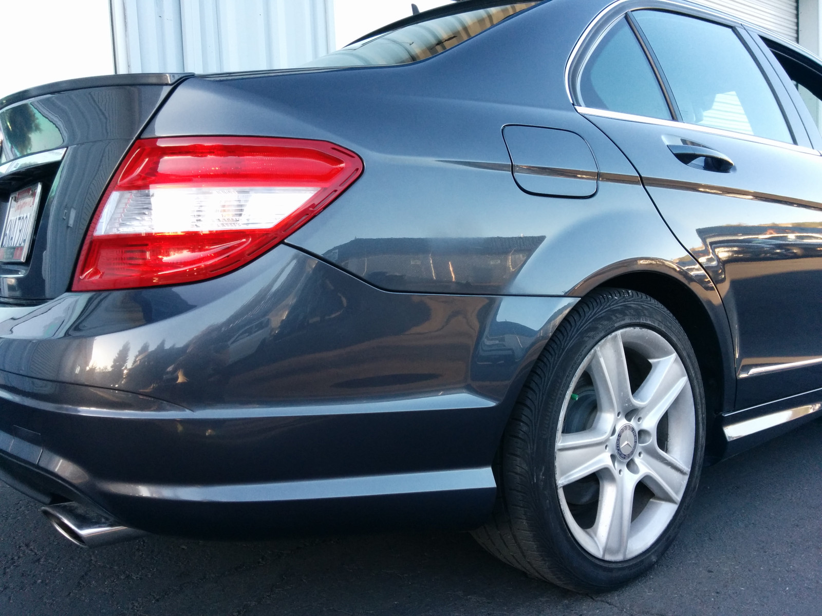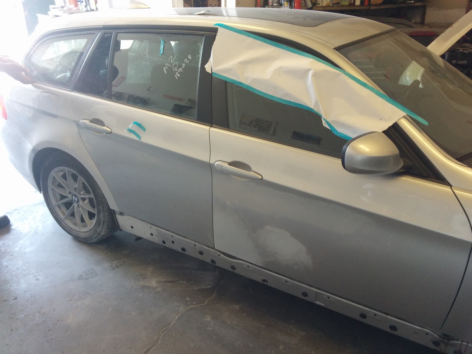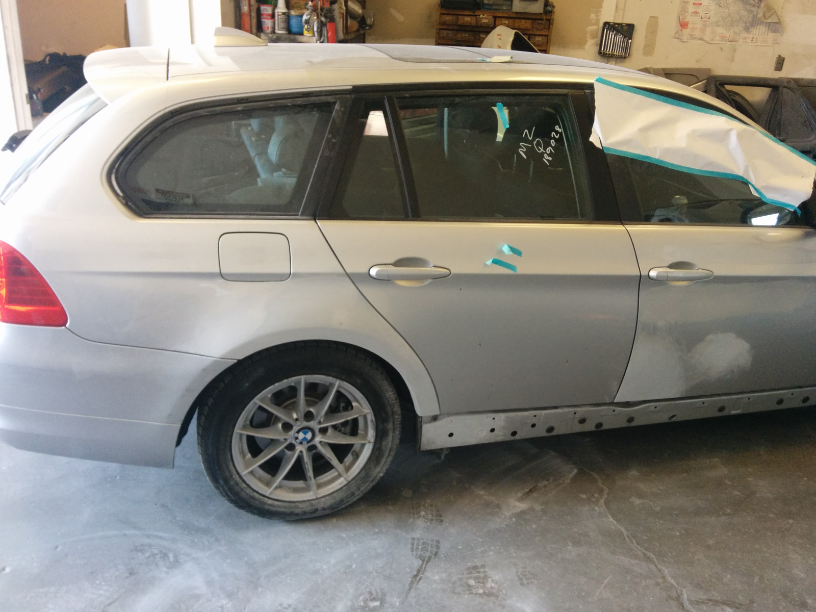 The black Audi S4 has a damaged frame rail that we sectioned and welded in a replacement, the BMW e90 wagon had side impact damage, and the the Mercedes C Class had quarter panel and trunk damage. Our award winning BMW 320is project received a full restoration with glass out repaint and engine compartment respray.