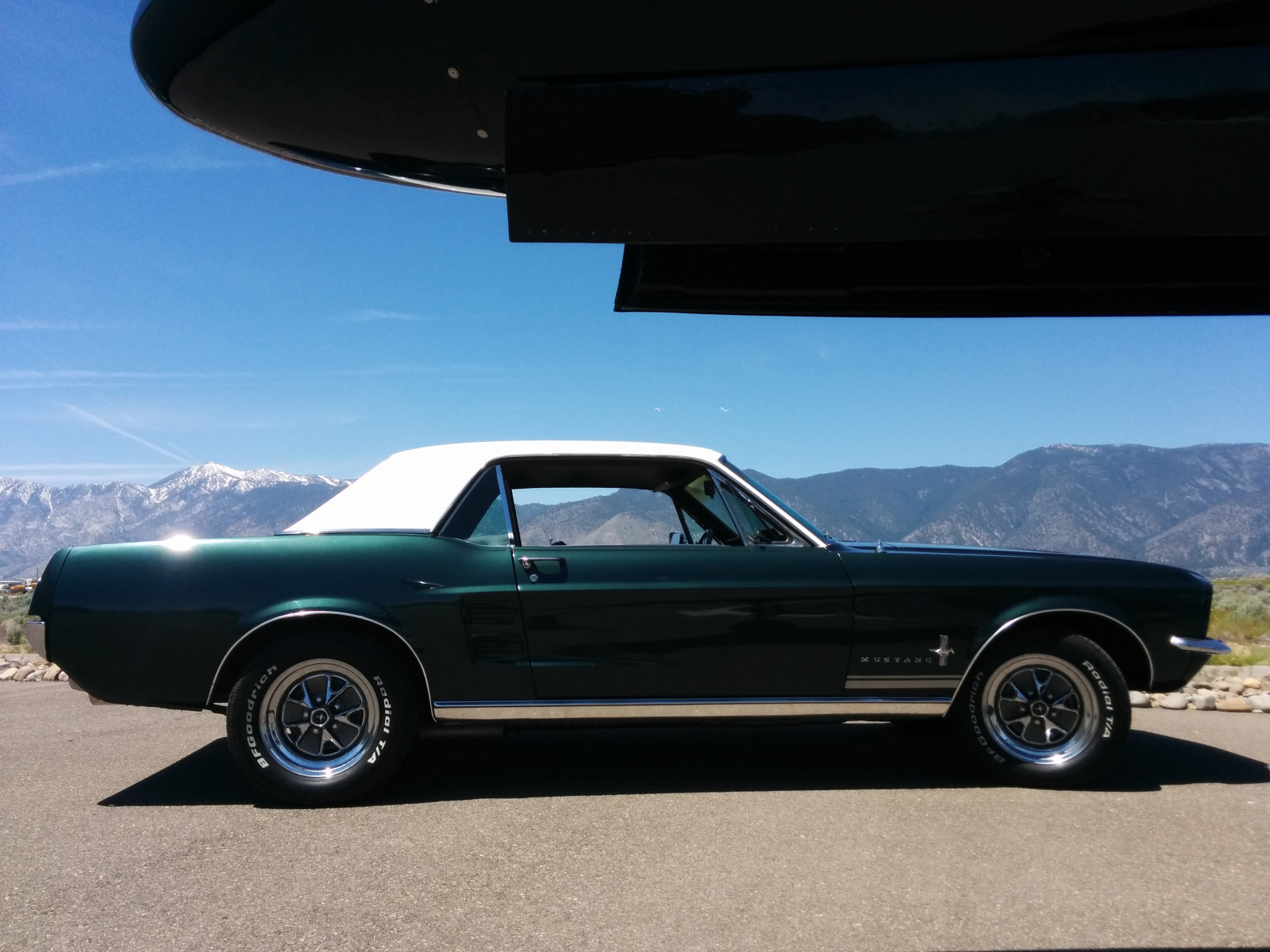 We went outside of our standard repertoire and did a job for one of our Porsche 911 / Audi S5 customer’s. Ford Mustang. We pulled the frame, removed the black vinyl top, and repainted this classic Ford Mustang to match the customers jet!